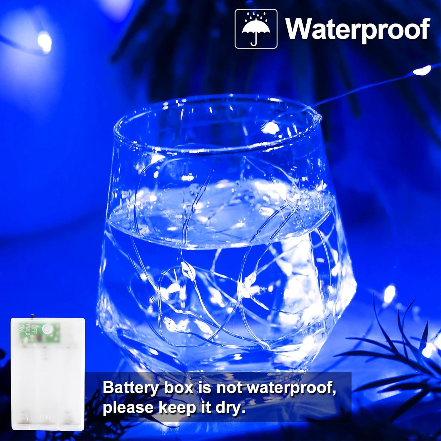 • Waterproof Design: IP65 waterproof rating allows indoor and outdoor use without worry of moisture or weather damage.Battery box is not waterproof,keep it dry.