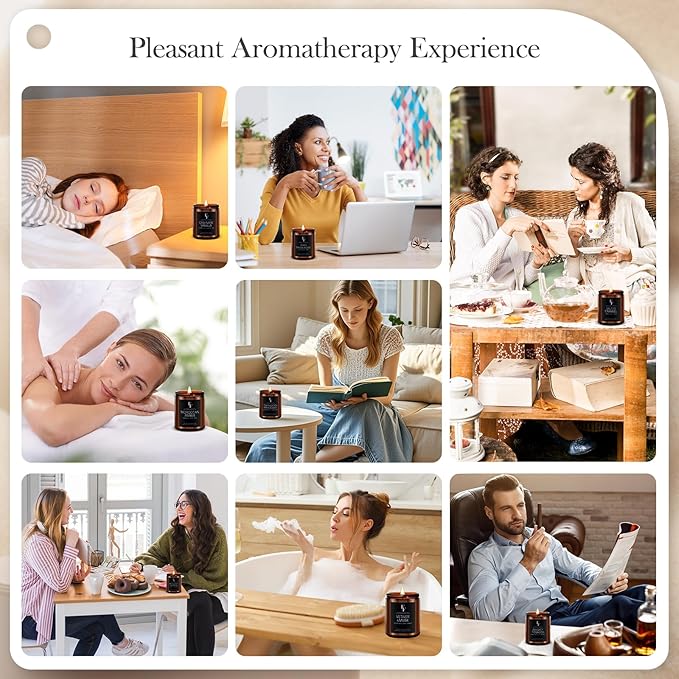 • Diverse Fragrance Experience: This exquisite candles set features eight unique scents, each carefully crafted to transport you to a world of tranquility and indulgence. From the warmth of Cashmere Vanilla to the rich depth of Sandalwood Ebony, every candle offers a distinctive olfactory journey