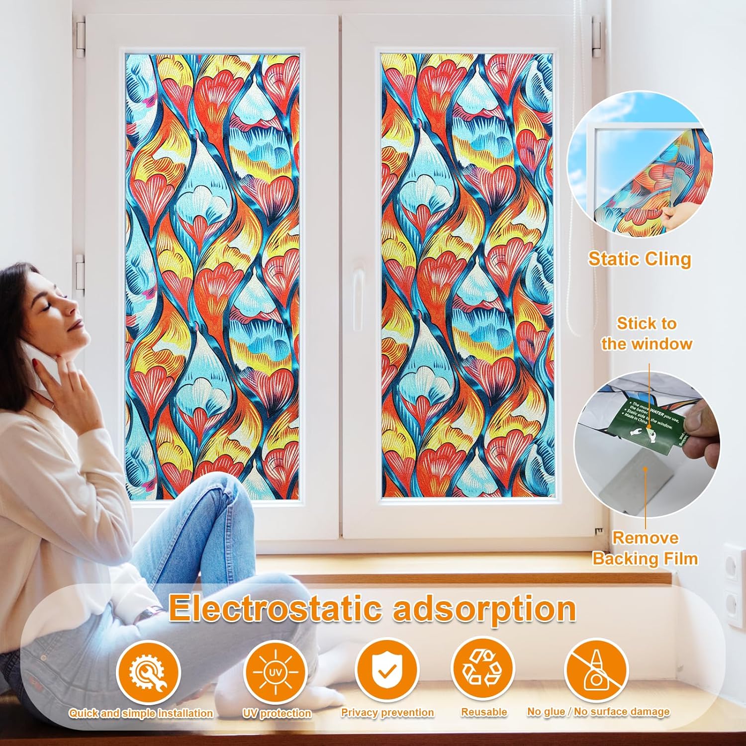 • 【Dual-Function Window Solution】Frosted static cling film provides daytime privacy while allowing sunlight through. Providing UV protection without darkening rooms.