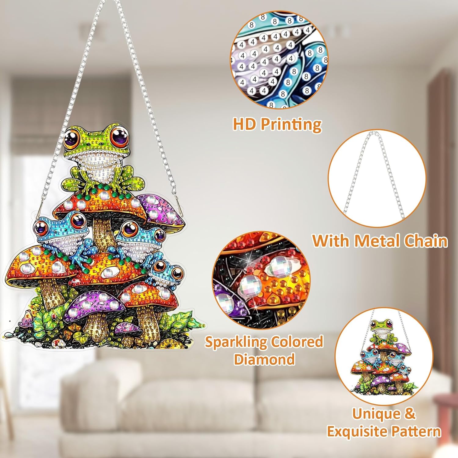 SENQAO Frog Diamond Art Hanging Kit for Adult, Special Shaped Rhinestone, Double Sided DIY Acrylic Diamond Art Painting Window Pendants Home Garden Wall Hanging Kits Hanging Ornament