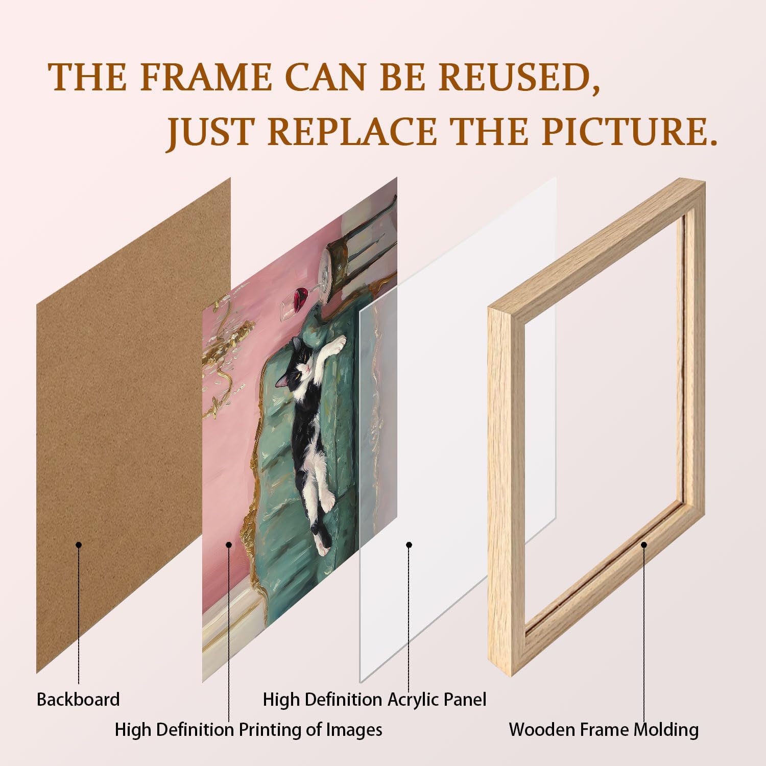 • Exquisite Solid Wood Frame: Each painting is equipped with an elegant solid wood frame, which enhances the texture and stability of the painting, making it more suitable for hanging on any wall and easily integrated into the modern home style.
