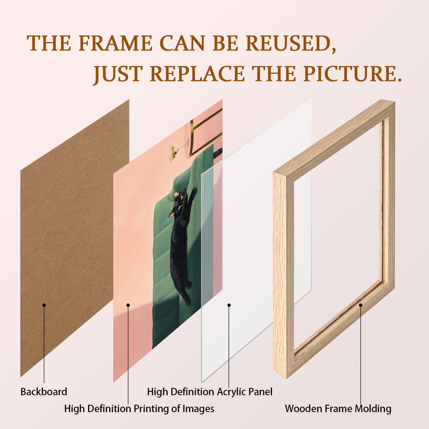 • Exquisite Solid Wood Frame: Each painting is equipped with an elegant solid wood frame, which enhances the texture and stability of the painting, making it more suitable for hanging on any wall and easily integrated into the modern home style.