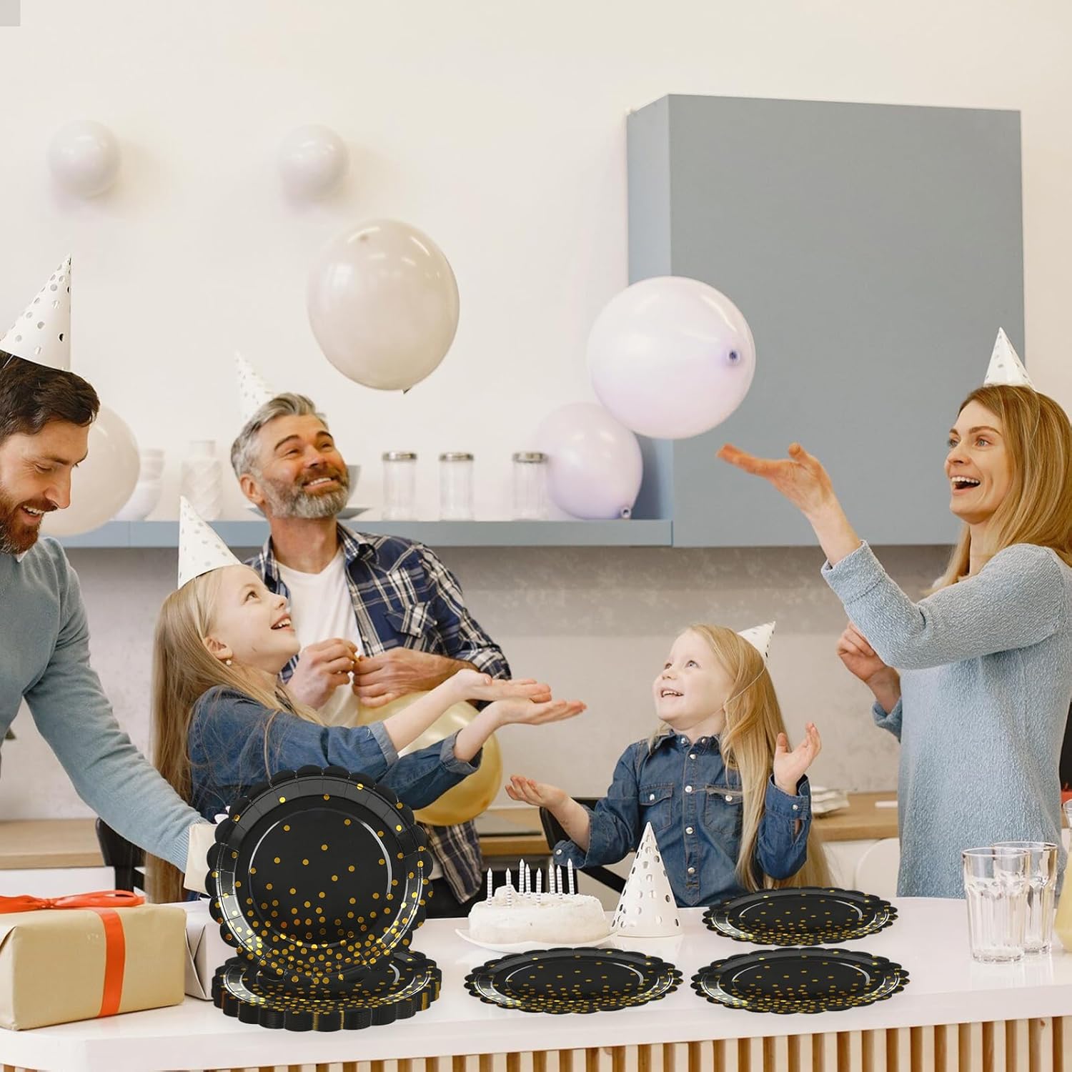 • 【FOR EVERY EVENT】: Elegant black and gold plates for party is great for everyday and party use, like retirement parties, aniversary parties, graduation Parties, cocktail evenings, BBQ parties, family gatherings, bar decorations, picnics, elegant bridal showers, afternoon tea parties, birthdays, holiday celebrations, Christmas, New Years, and other occasions and events.