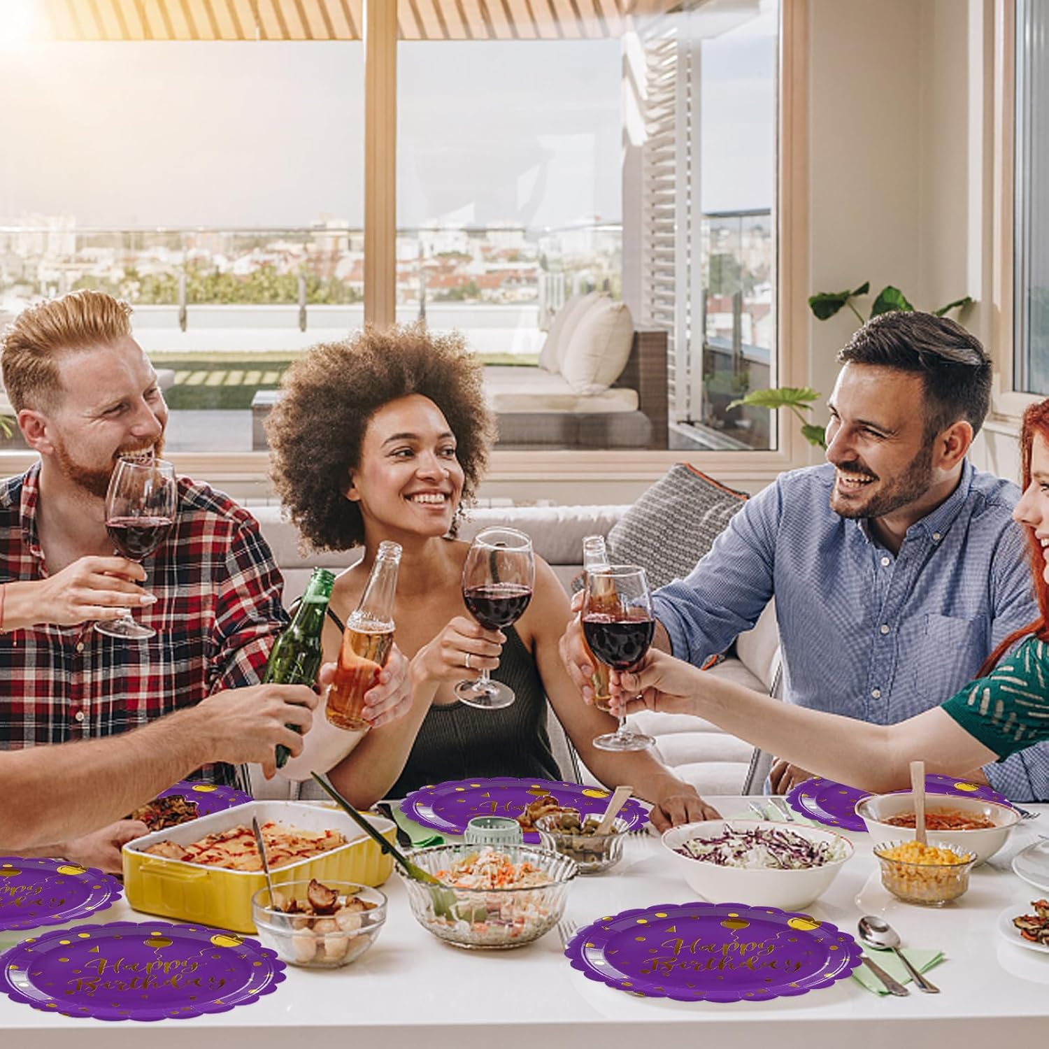 • 【MEMORABLE OCCASIONS】: Purple birthday plates is great for every ages, the color purple makes people feel mystical and joyful, suitable for 16st birthday party, 18th birthday party, 60th birthday party, 80th birthday party, and other ages of you, whether it's a boy, a girl, a man, or a woman you can brighten up the table with purple birthday paper plates, now spread your joy to your guests!