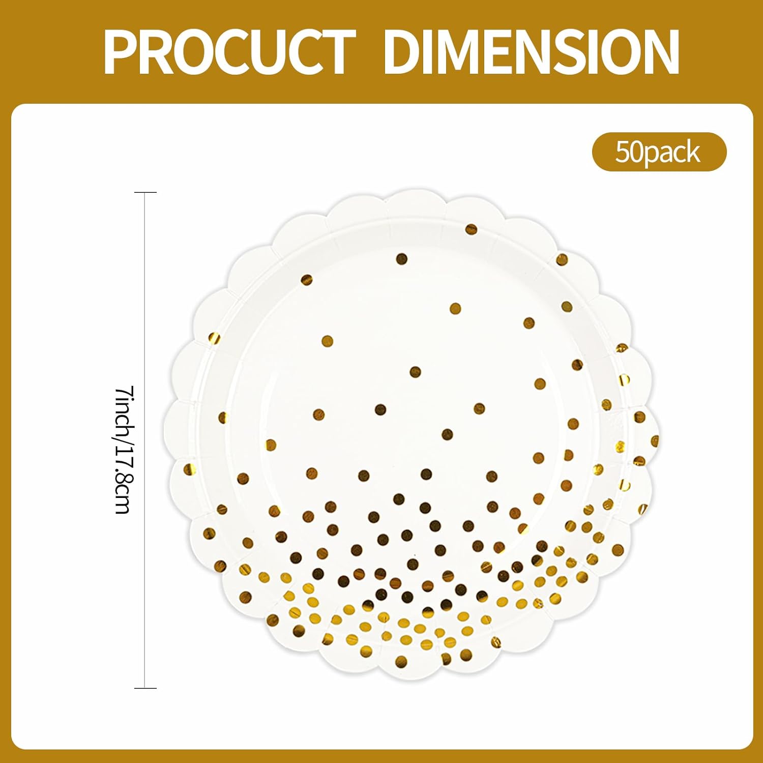 • 【ELEGANT WHITE PARTY DECORATIONS】: White and gold party plates set comes with 50pcs white paper plates, serve up to 50 guests, specifically for dessert plates size: 18cm/7inch, gold foil paper plates are exquisite and generous, the perfect party addition you've been looking for a guaranteed hit!