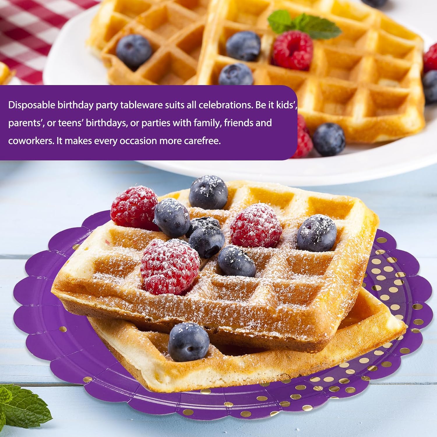 • 【PURPLE PARTY DECORATIONS】: Purple party plates set comes with 50pcs purple paper plates, serve up to 50 guests, specifically for dessert plates size: 18cm/7inch, gold foil paper plates are exquisite and generous, the perfect party addition you've been looking for a guaranteed hit!