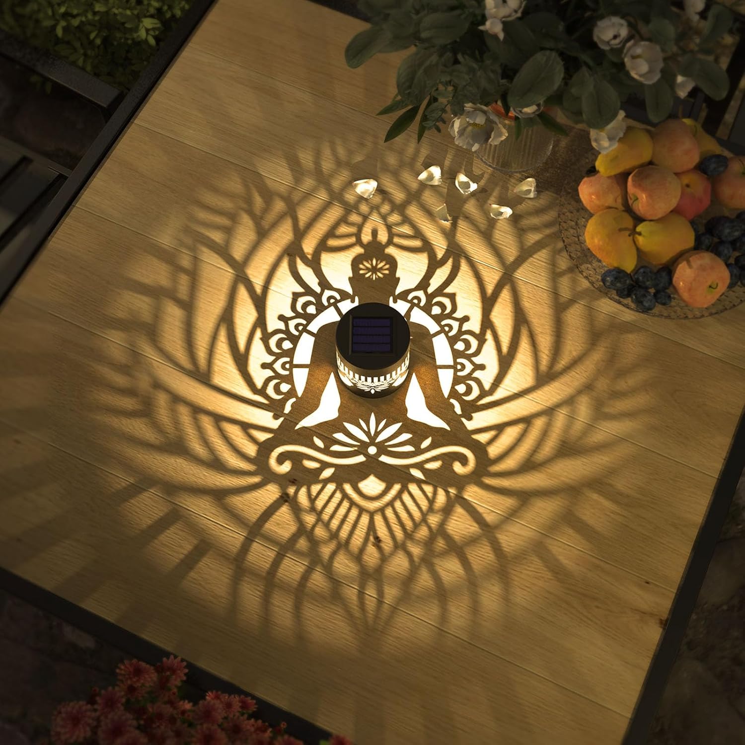 • Good Decoration: 10 lumens of warm yellow light. The small fence solar lights can project a unique and beautiful zen pattern. In a dim environment, the solar lights can illuminate a corner of the fence or the wall and create a beautiful and warm atmosphere. They are very suitable as holiday decorations and gifts for relatives and friends.
