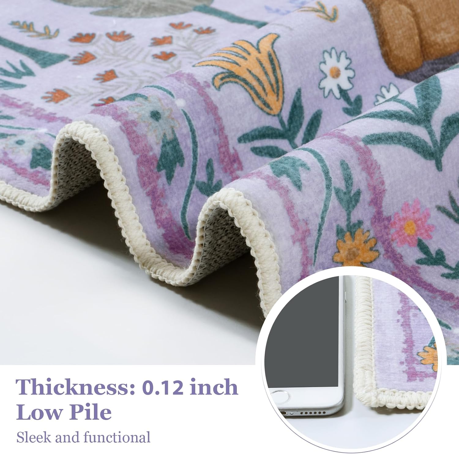 • Kids & Pets Friendly: This soft rug for nursery is suitable for kids and pets to play on. Its 0.12-inch low-pile design ensures a plush texture without being too bulky and prevents food crumbs, fur, hair, and dirt from getting trapped inside, making it perfect for high traffic area