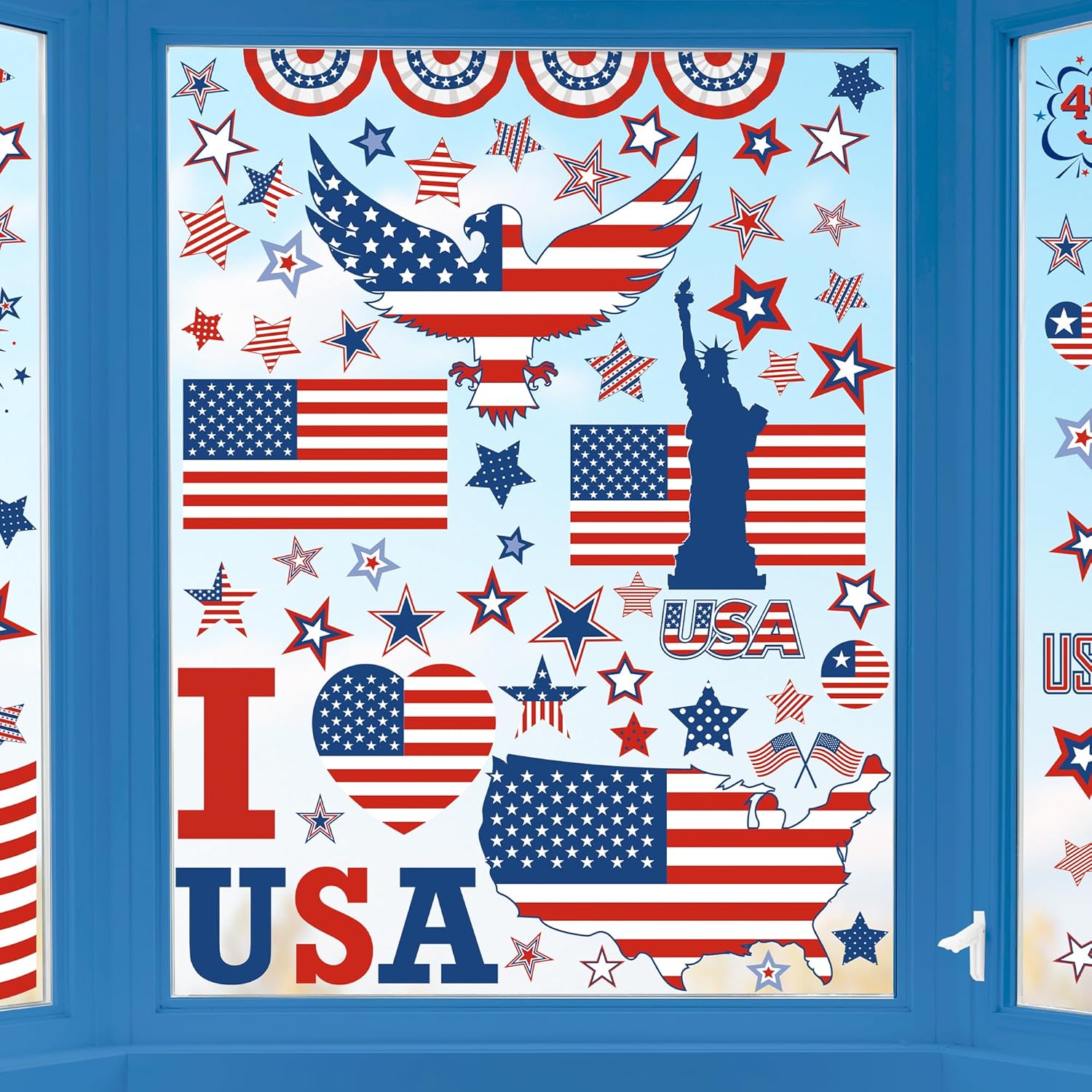 • Patriotic Window Cling Set - Get 158 reusable 4th of July window clings for glass windows, each measuring 7.87"x11.81". Made from waterproof PVC material, these patriotic decorations resist fading for indoor/outdoor use and serve as anti-collision window stickers for birds.
