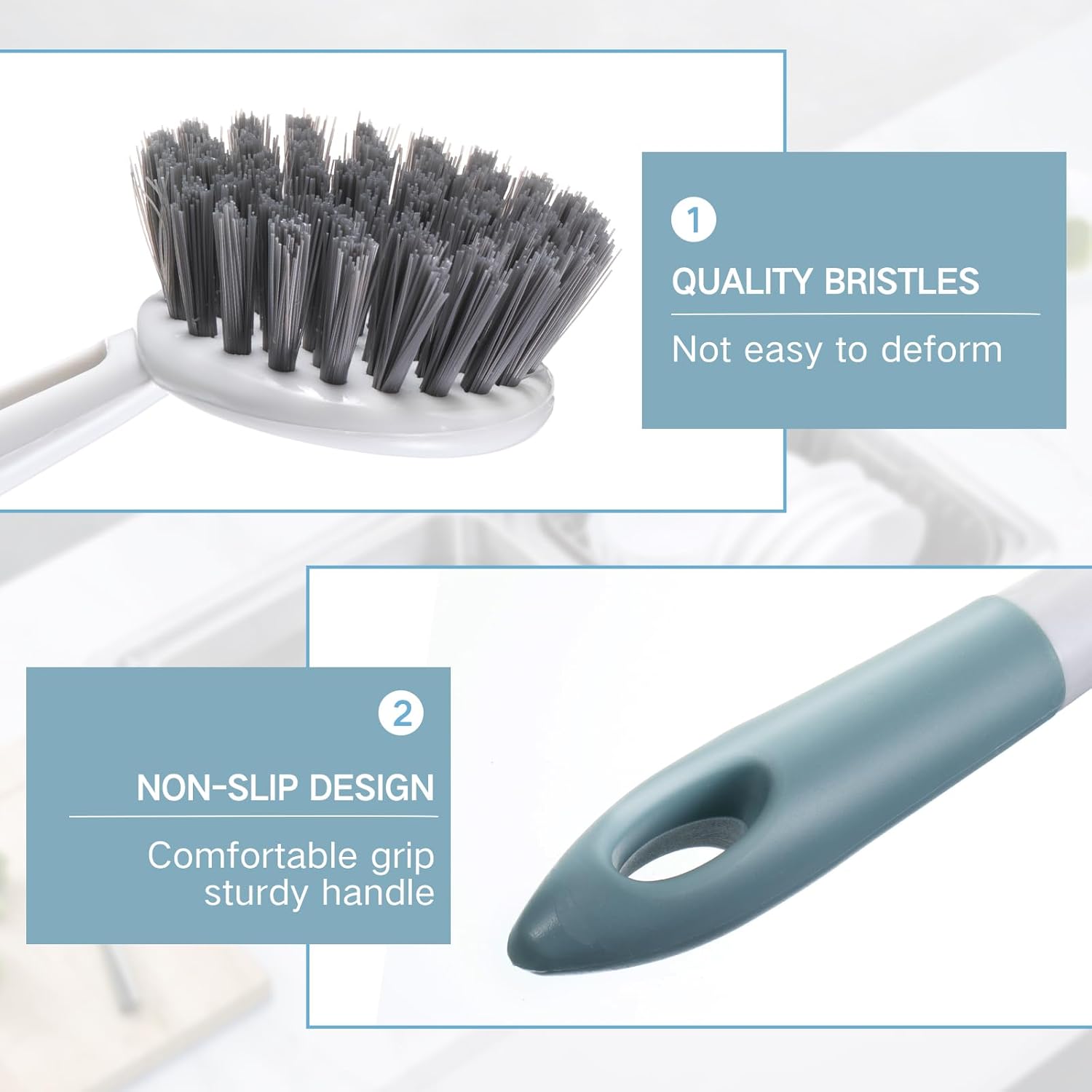 • Non Slip Handle: with a non slip handle, the dish scrubber ensures a firm grip, preventing slips during use; The expertly design also keeps your hands clean and dry, turning chores into pleasant, efficient tasks, whether you're using a dish brush for kitchen tasks or a more intensive scrub