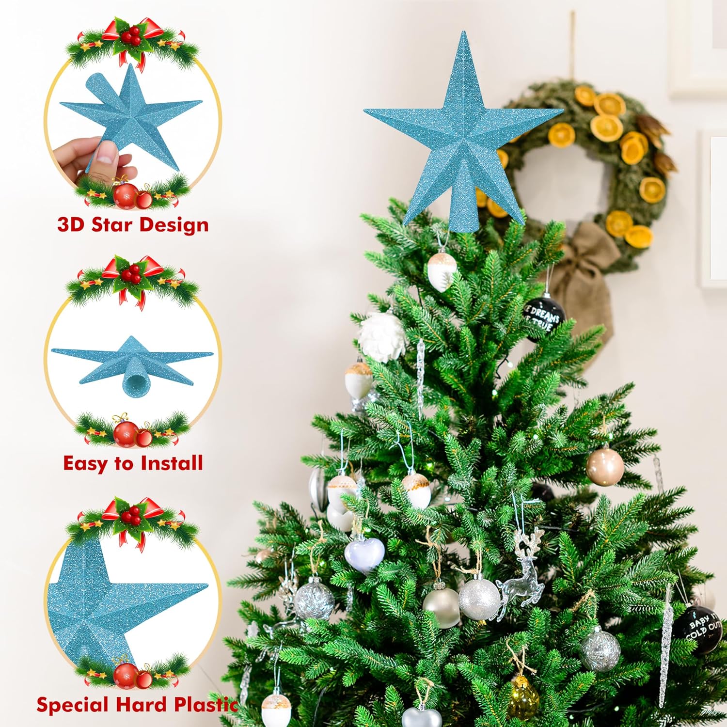1PCS Tree Star Topper, Blue 4" Christmas Tree Topper Decorations, Glitter Shatterproof Mini Bethlehem Star Tree Topper Decor, Waterproof Star Tree Topper for Christmas Holiday Indoor/Outdoor Ornament