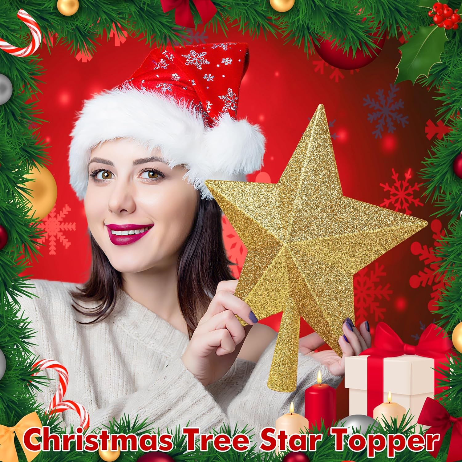 Christmas Tree Topper, 1PCS 10" Gold Glitter Star Tree Topper, Large Xmas Shatterproof Mini Bethlehem Star Tree Topper Decorations, Waterproof Christmas Decor for Holiday Home Outdoor Ornament