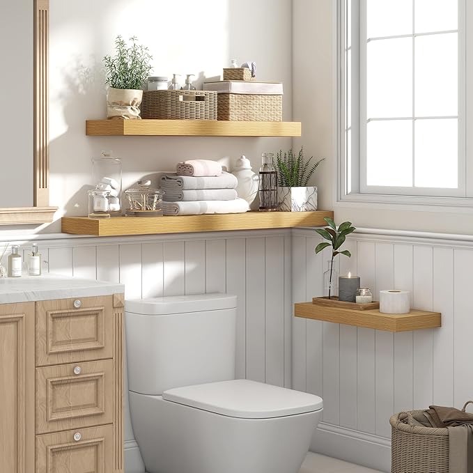 Heimlove 36 Inch Floating Shelves for Wall Set of 2,Oak Wall Shelves for Storage & Decor - Heavy Duty with Invisible Brackets,Perfect for Living Room,Bedroom,Home Office