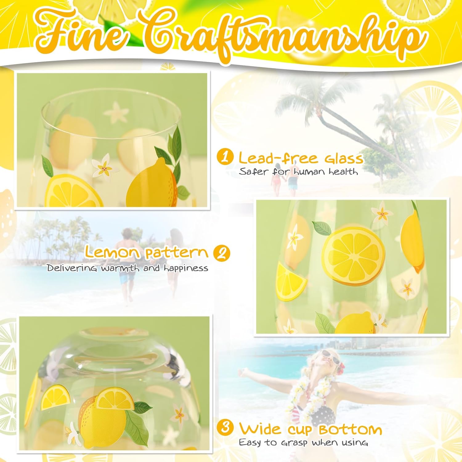 Sliner 2 Pack Lemon Stemless Wine Glasses 17oz Lemon Drinking Glasses Clear Stemless Wine Tumbler Unique Gift for Wedding, Mother's Day Birthday Drinking Party