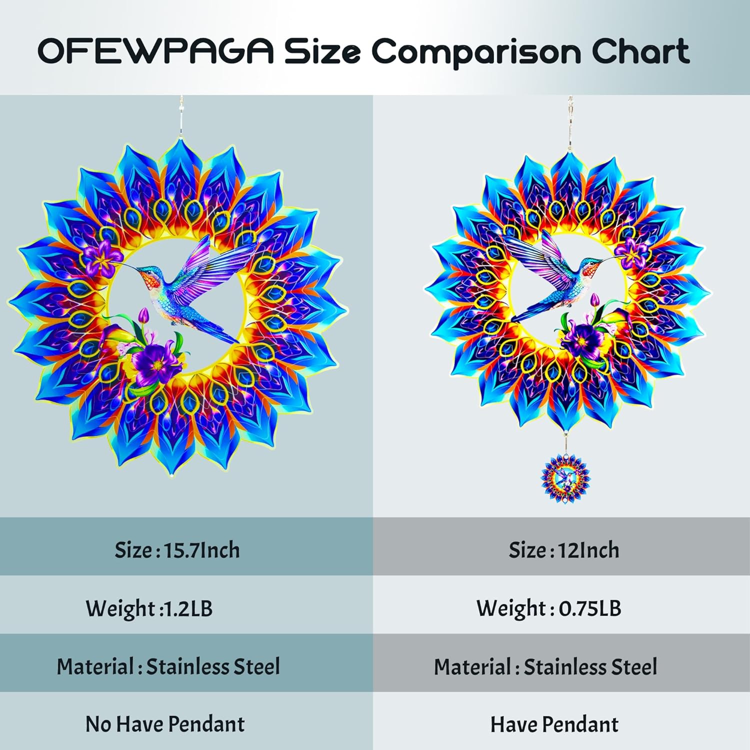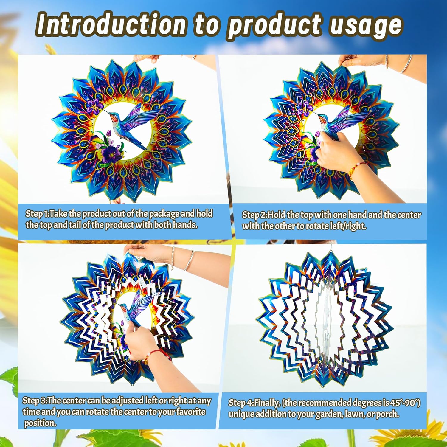 • 【Product Introduction】: This upgraded 15.7 x 15.7 inch 3D wind spinner offers a larger, more eye-catching design than our classic 12-inch model. Made of high-quality stainless steel with precision cutting and advanced PUV printing, it features a vivid 3D hummingbird shape that adds dynamic charm to any outdoor space.
