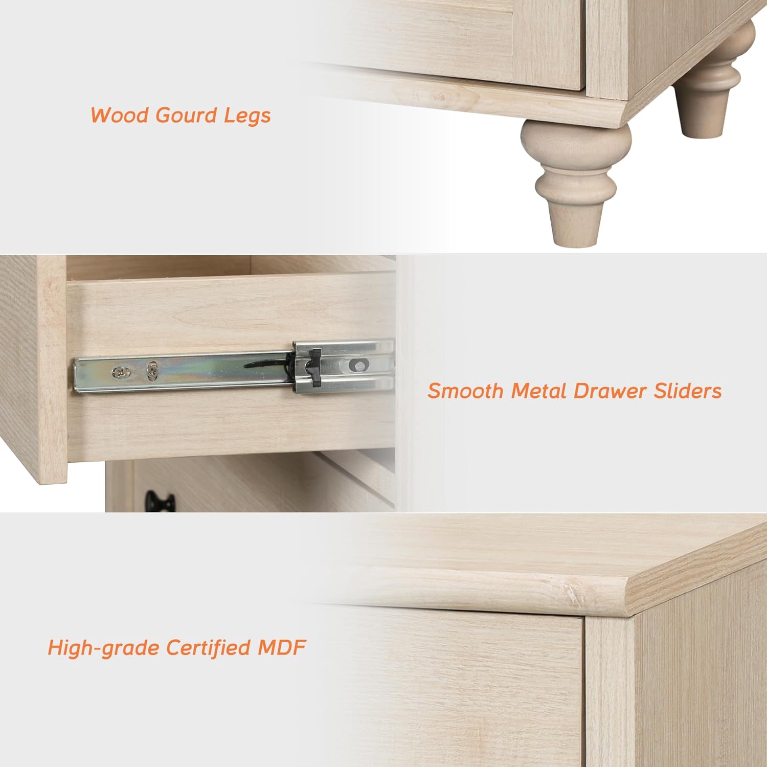 • 【Quick Assembly& 3 Packages】 This wood dresser is sent in 3 packages,so you may receive them at different times.It comes with pre-assembled drawer glides so you can put it together easily.Equipped with smooth metal drawer slides and handles, the drawers of the closet dresser are effortless to open and close.