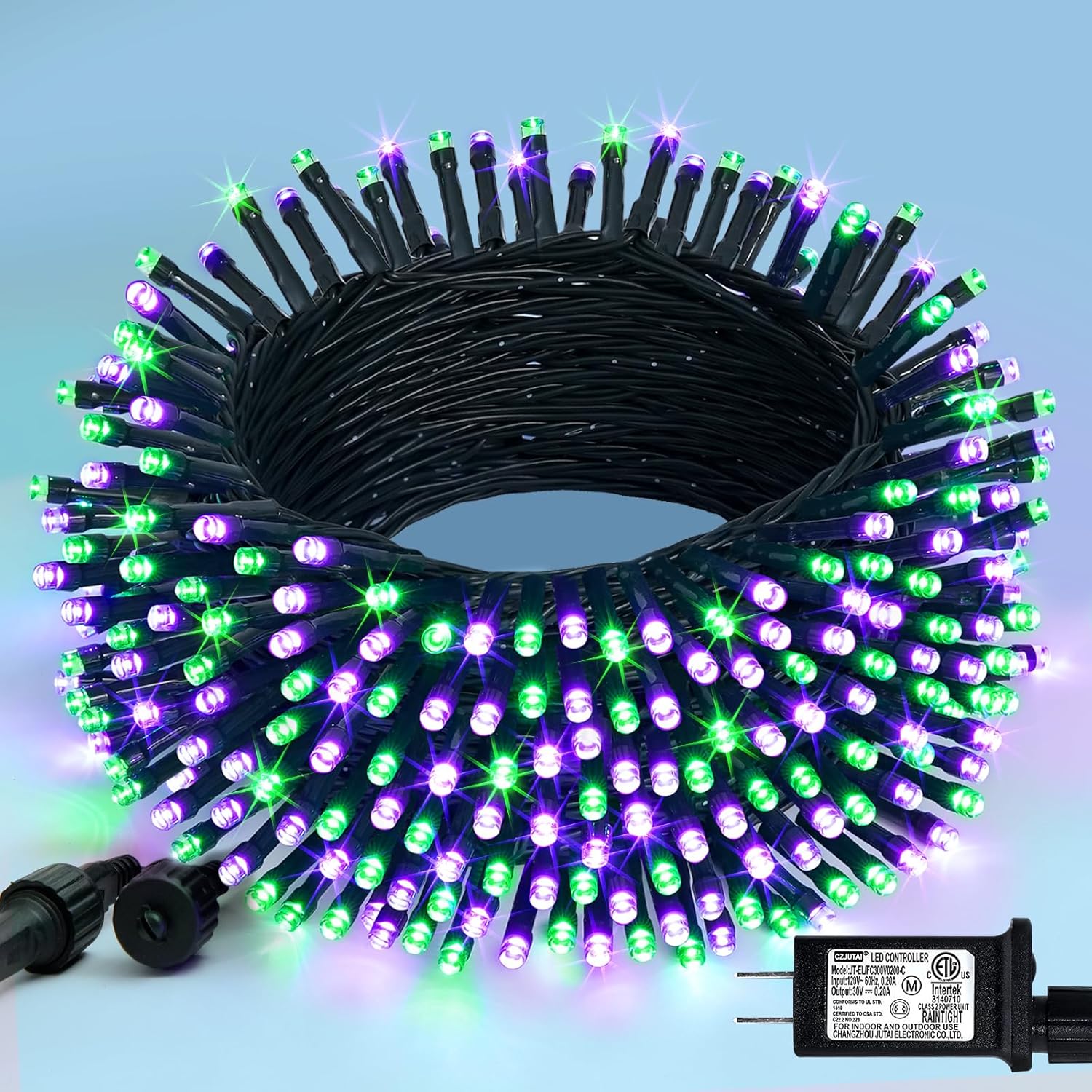JMEXSUSS 200 LED Purple and Green Halloween Lights Plug in, 66ft Connectable Halloween String Lights,8 Modes Outdoor Waterproof Tree Light for Yard Outdoor Indoor Bedroom Garden Patio Decor