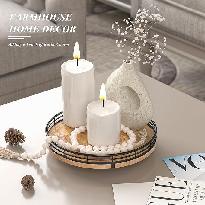 • PREMIUM MATERIAL: Our farmhouse lazy Susan organizer is made of natural solid oak wood and strong metal, sturdy, durable and premium quality. This wooden turntable organizer is a game-changer for keeping your kitchen organized. The farmhouse oak finish gives it a rustic, charming look that will fit perfectly with your kitchen decor.