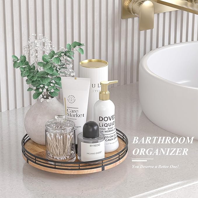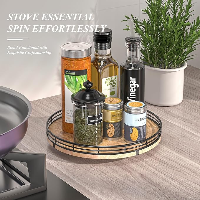 • 360 RATATING & MAXIMIZE SPACE: The base is made of solid wood and the spinning mechanism is made of steel ball bearings, which are well-built and allow for 360° smoothly spin. Making it super easy to access items at the back of your cabinet without having to remove everything in front. You can use it to store spices, condiments, and even small jars, and it keeps everything neatly in place.