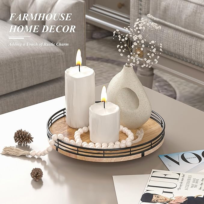 • PREMIUM MATERIAL: Our farmhouse lazy Susan organizer is made of natural solid oak wood and strong metal, sturdy, durable and premium quality. This wooden turntable organizer is a game-changer for keeping your kitchen organized. The farmhouse oak finish gives it a rustic, charming look that will fit perfectly with your kitchen decor.