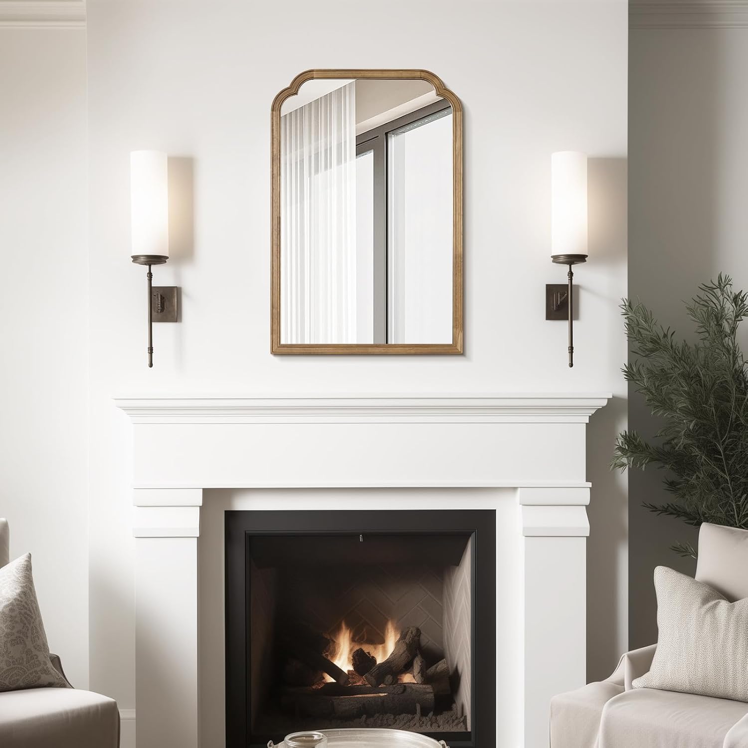 WallBeyond Wood Bathroom Mirrors for Wall Mounted, 24" x 36" Rustic Wood Frame Wall Mirrors Decorative for Living Room or Bedroom Vanity Mirror, Honey-Colored