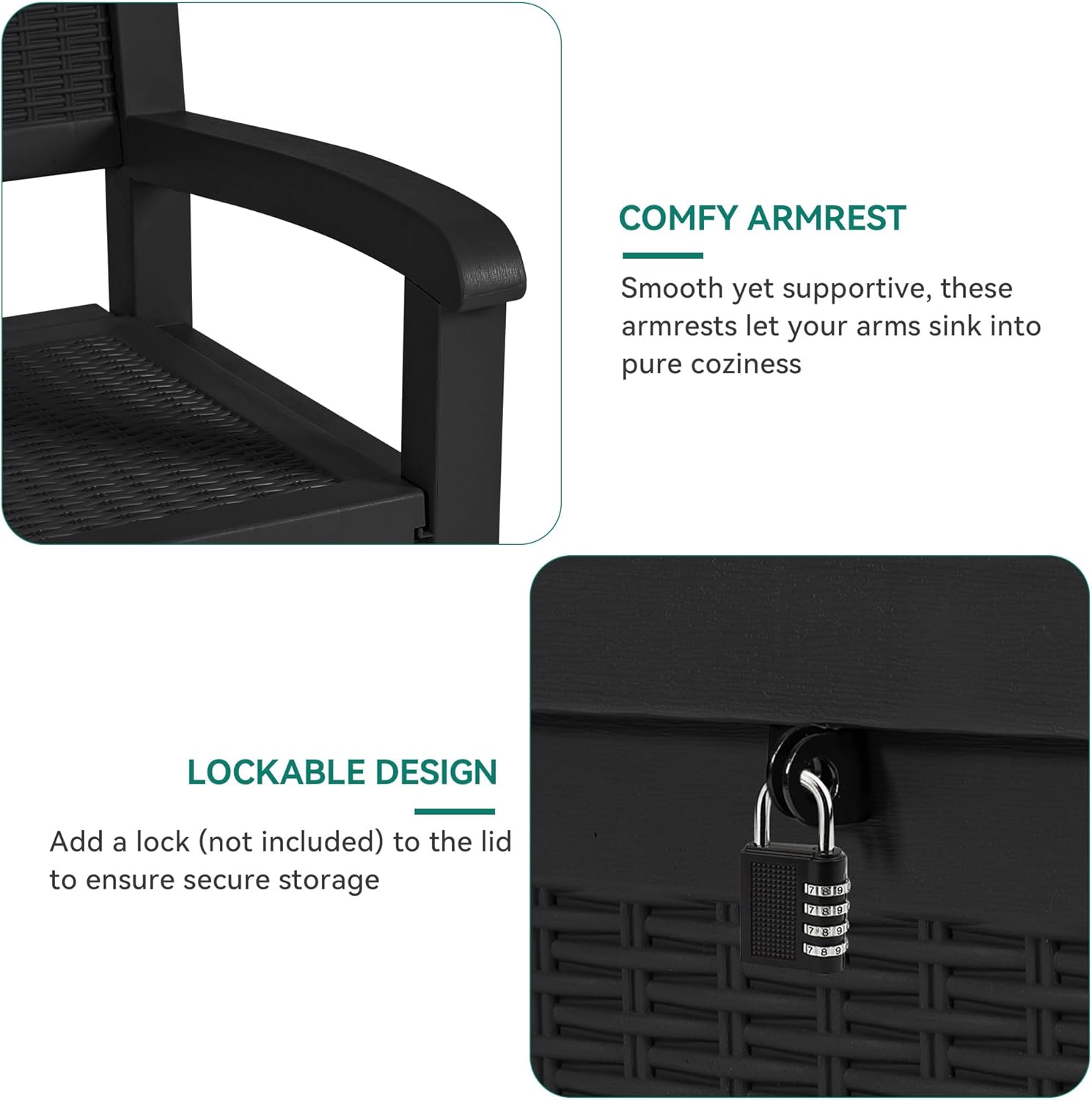 • Built for All Weather: Made from durable, weatherproof resin, this outdoor bench with storage resists rain, rust, UV rays, dirt, and discoloration, ensuring long-lasting protection in any season