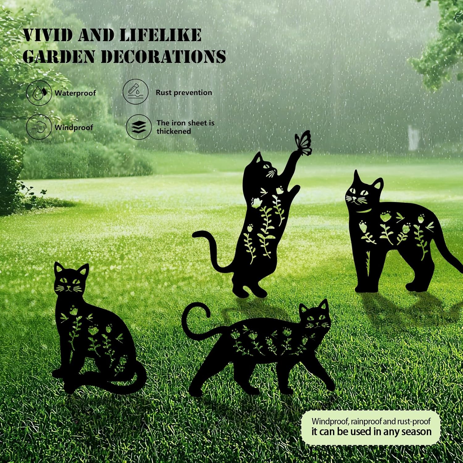 4 Pack Cat Metal Garden Decorative Stakes, Weather Proof Silhouette Statues for Yard, Patio,Outdoor Decor for Cat Lovers and Pet Owners