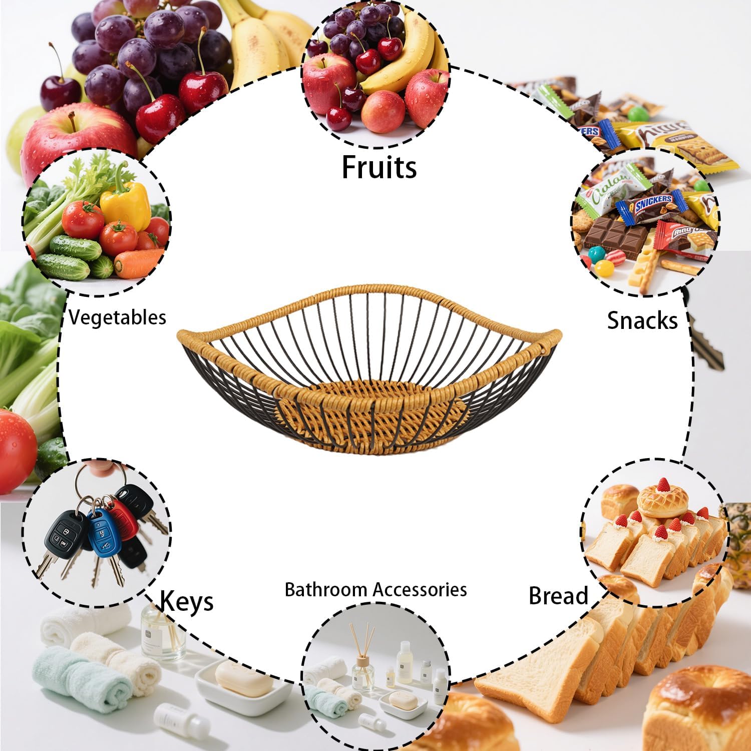 • Durable and Stylish Design - The black fruit basket wire fruit basket countertop fruit basket is made from premium vine woven iron, this fruit plate is designed for long-lasting use while adding a modern touch to any space. Perfect for countertop storage, it keeps fruits, vegetables, and even snacks organized. Enhance your kitchen or living room with this elegant fruit holder stand and table centerpiec