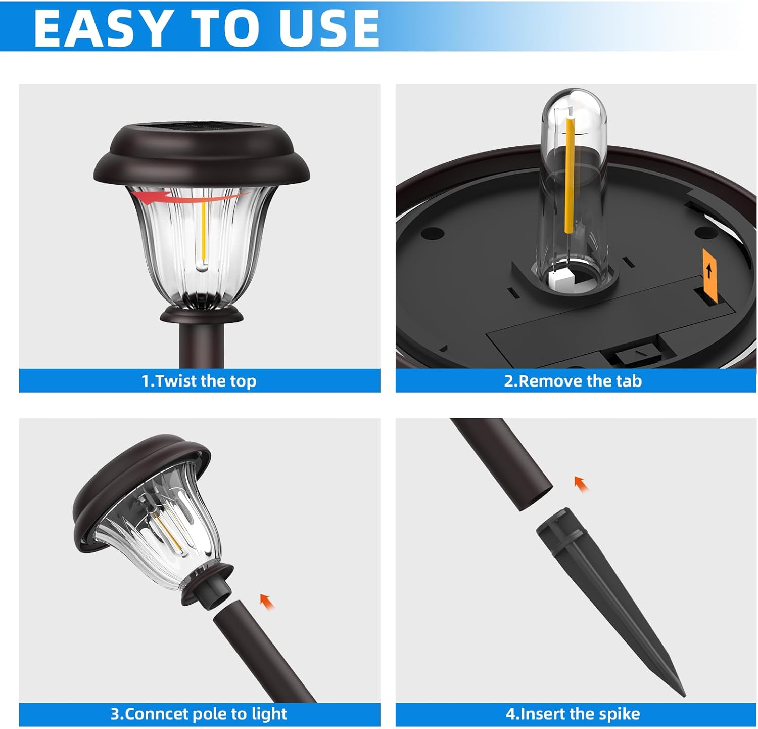 • Easy Installation - No wiring or electricity is required, making installation a breeze. Simply stake the pathway lights into the ground in a sunny spot, without the hassle of traditional outdoor lighting systems, provide illumination for your garden or yard .