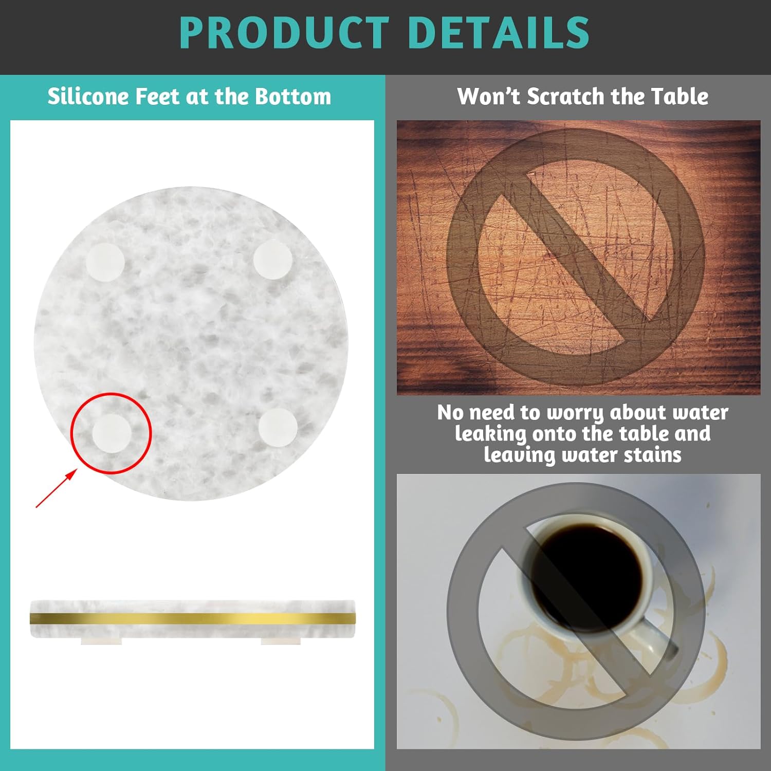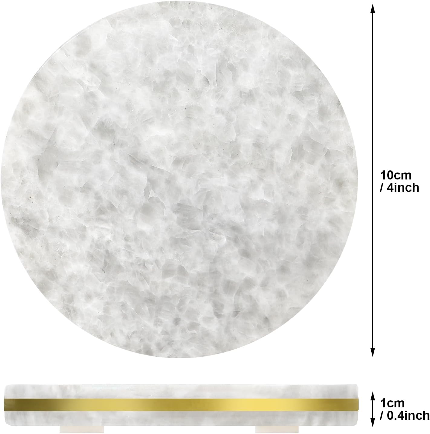 • [ Package Includes ]: Set of 4 round marble coasters, each measuring 4" in diameter and 0.4" in thickness. Each coaster weighs approximately 0.5 lb (220g).