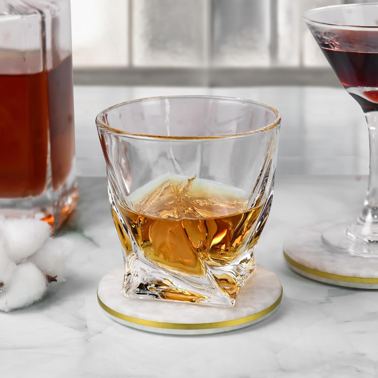 • [ Elegant Home Decor ]: Each coaster is accented with a golden brass ring, adding a touch of luxury and making it stand out from typical marble coasters. This elegant set will elevate the style of any space.