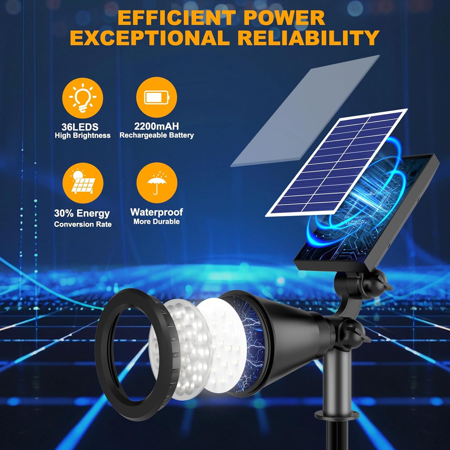 • 【Bright Solar-Powered Lighting for Your Outdoors】These powerful solar powered outdoor lights feature 36 LEDs that provide brilliant, eco-friendly illumination. The lights automatically turn on at dusk and off at dawn, offering 6–12 hours of vibrant lighting. Let your yard shine with stunning outdoor lights—no switches needed