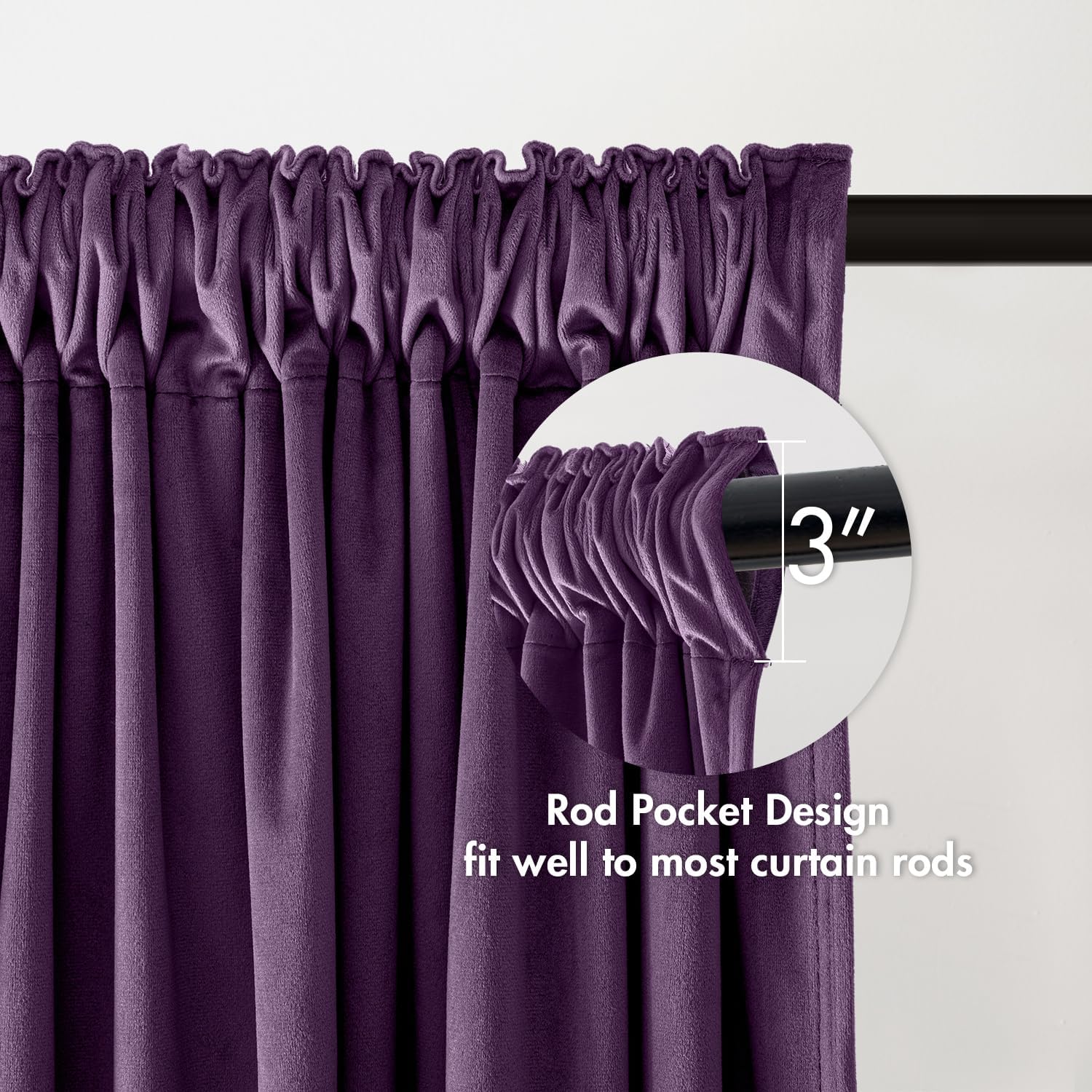 MIULEE Purple Velvet Curtains Thermal Insulated Blackout Curtain Drapes for Bedroom Living Room Darkening 84 Inches Long Curtains Panels Rod Pocket Set of 2