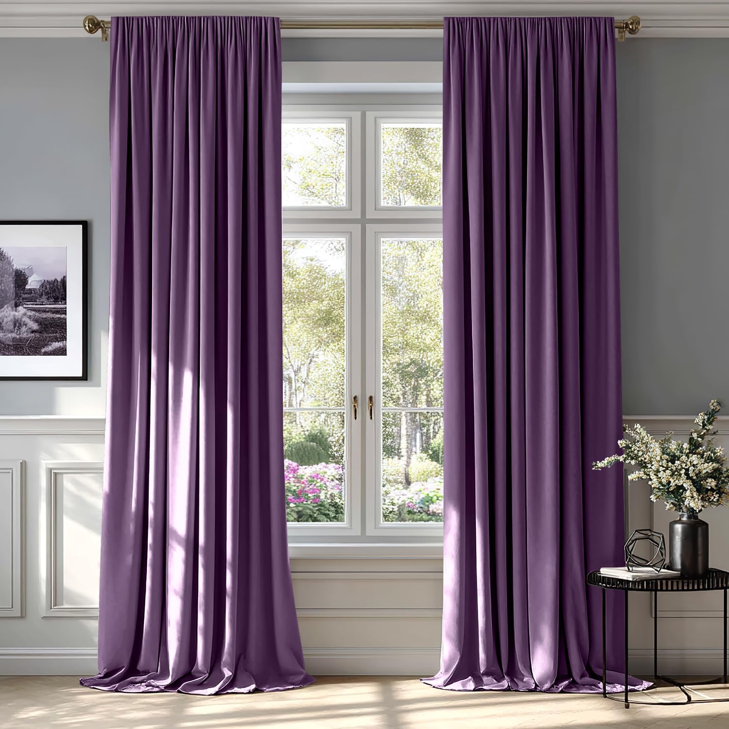 MIULEE Purple Velvet Curtains Thermal Insulated Blackout Curtain Drapes for Bedroom Living Room Darkening 96 Inches Long Curtains Panels Rod Pocket Set of 2