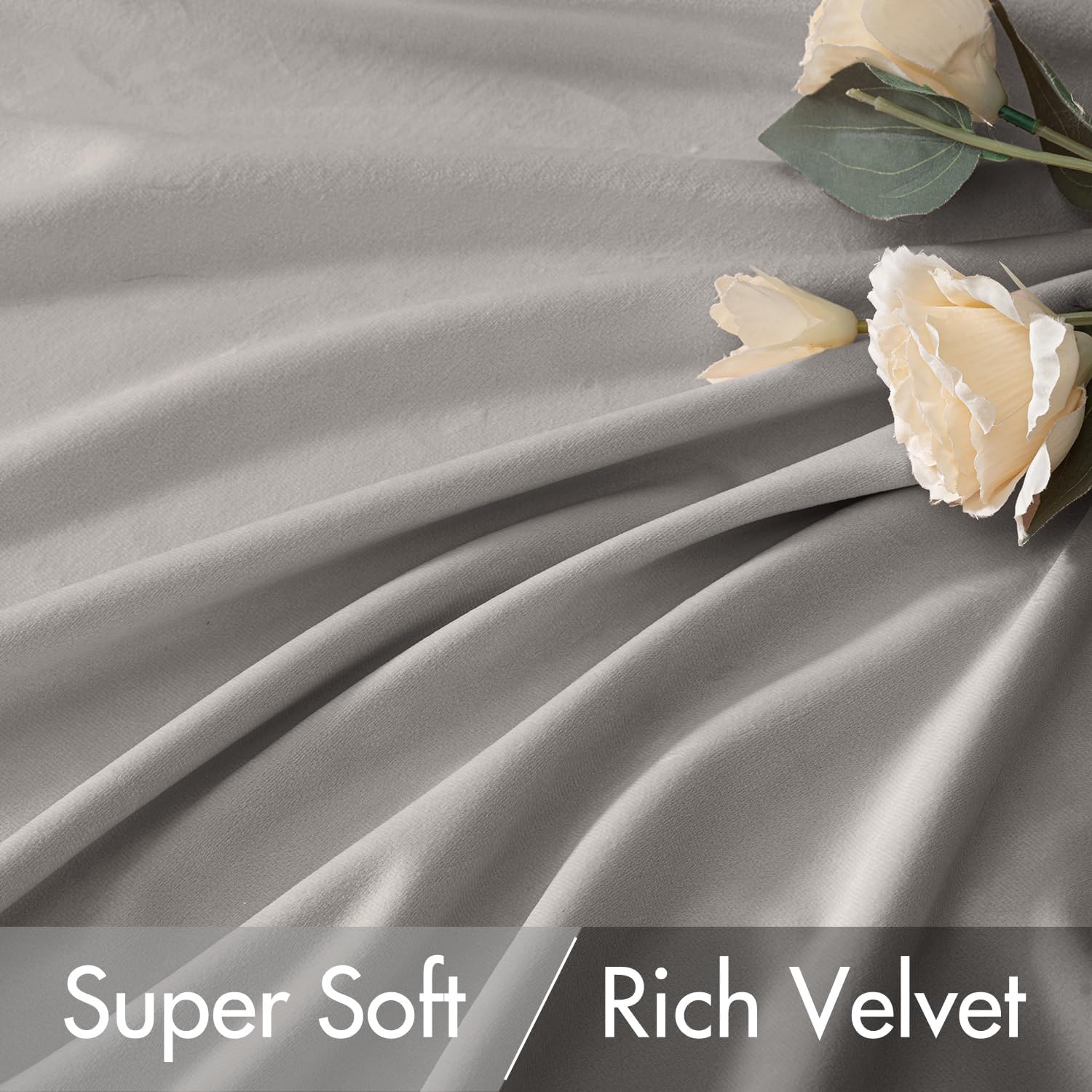 MIULEE Silver Gray Velvet Curtains 90 inches 2 Panels - Luxury Room Darkening Window Drapes for Bedroom Living Room Thermal Insulated Super Soft Blackout, Back Tab Rod Pocket Pinch Pleated, W52 x L90