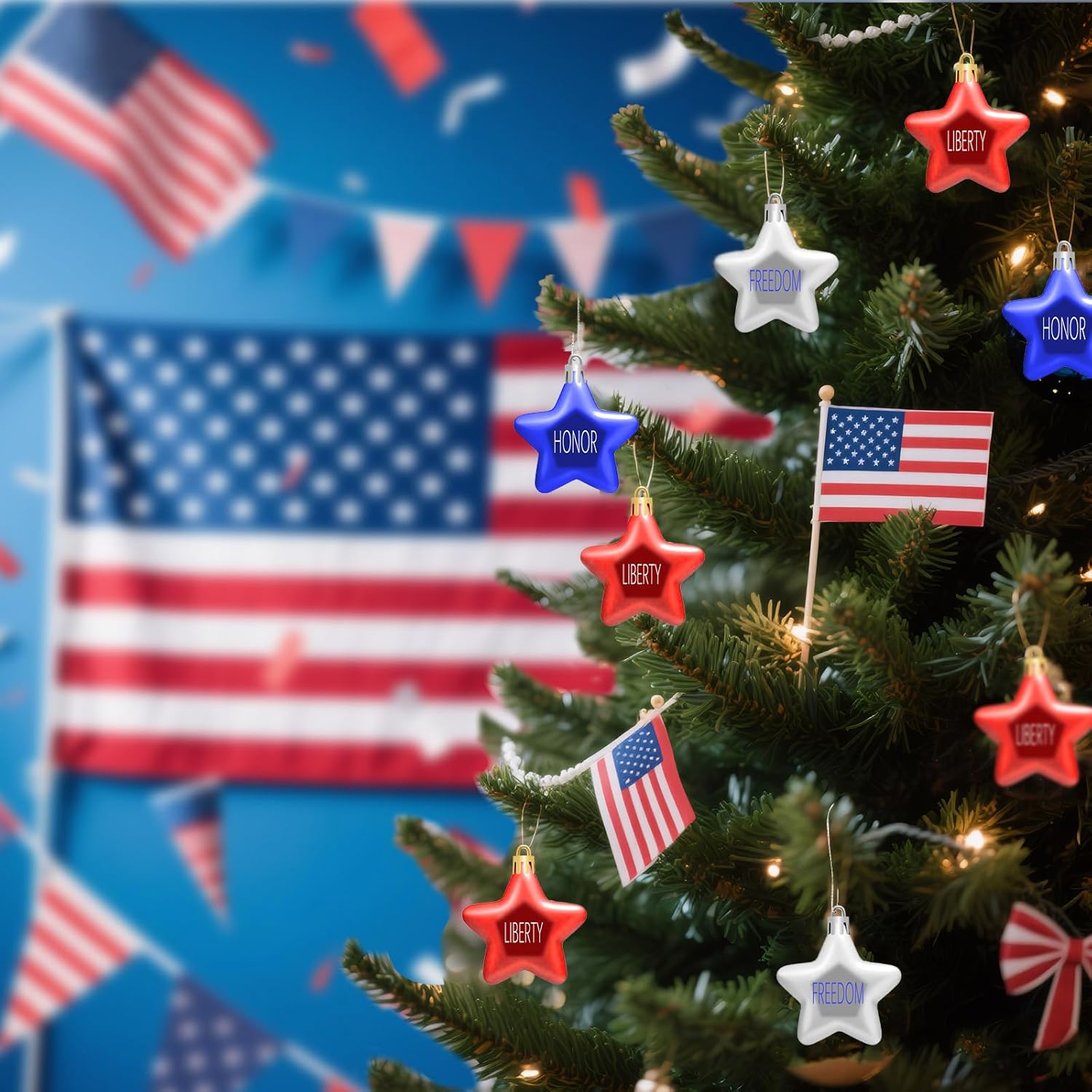 • Patriotic Ball Ornaments:This set includes 24 patriotic 3D hanging star ornaments in classic red, blue, and silver. Each ornament measures approximately 1.97 inches (5 cm) in diameter. Perfect for indoor or outdoor parties to showcase your patriotic spirit.