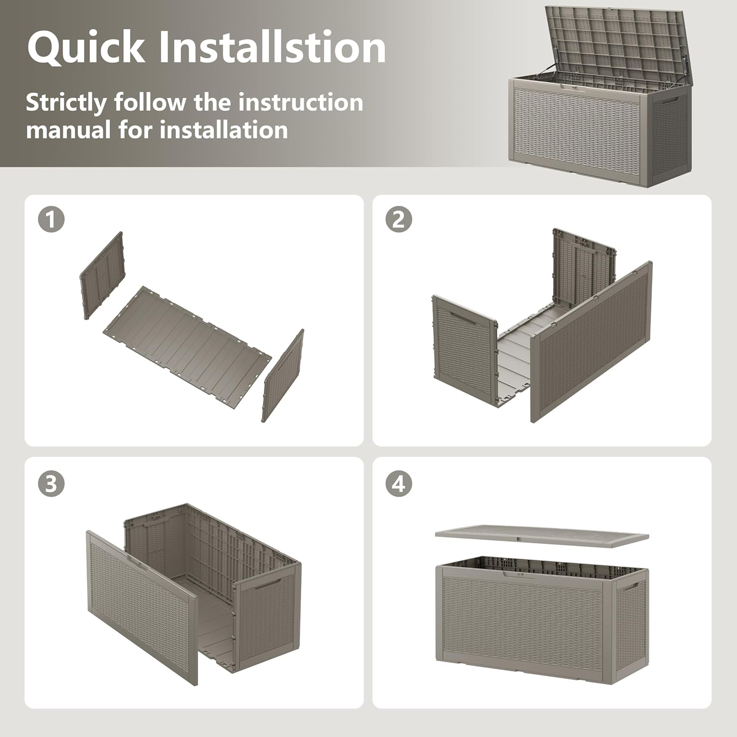 • Deck Boxes Outdoor Waterproof: Designed as a waterproof storage solution, this deck box protects your belongings from moisture and ensures they stay dry even during heavy rain. The lockable lid adds an extra layer of security, keeping your valuables safe from theft or damage.