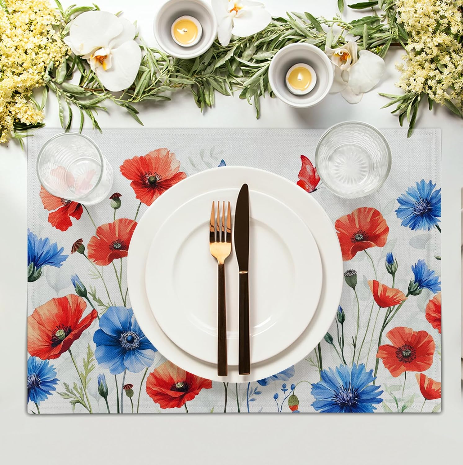 • VERSATILE OCCASIONS: Memorial day Independence day table place mats are suitable for different occasions and are an excellent decorative mat for any indoor or outdoor setting, such as kitchens, dining tables, hotels, restaurants, coffee shops, and business offices. They are also a beautiful decoration for banquets, dinners, receptions, housewarming, family gatherings, parties, and leisure kitchens. This will definitely leave a deep impression on the guests