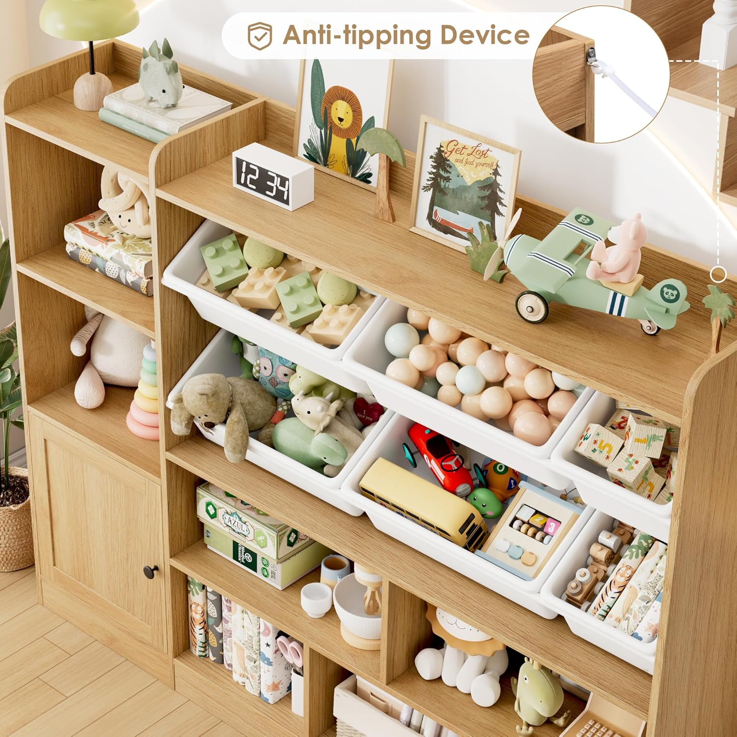 • 55" Wide Large Toy Organizer: This toy storage organizer comes with 6 toy bins, 7 open storage cubbies, and a closed storage cabinet, providing ample space for different types of toys, books, ornaments, puzzles, etc., making toy storage easier.
