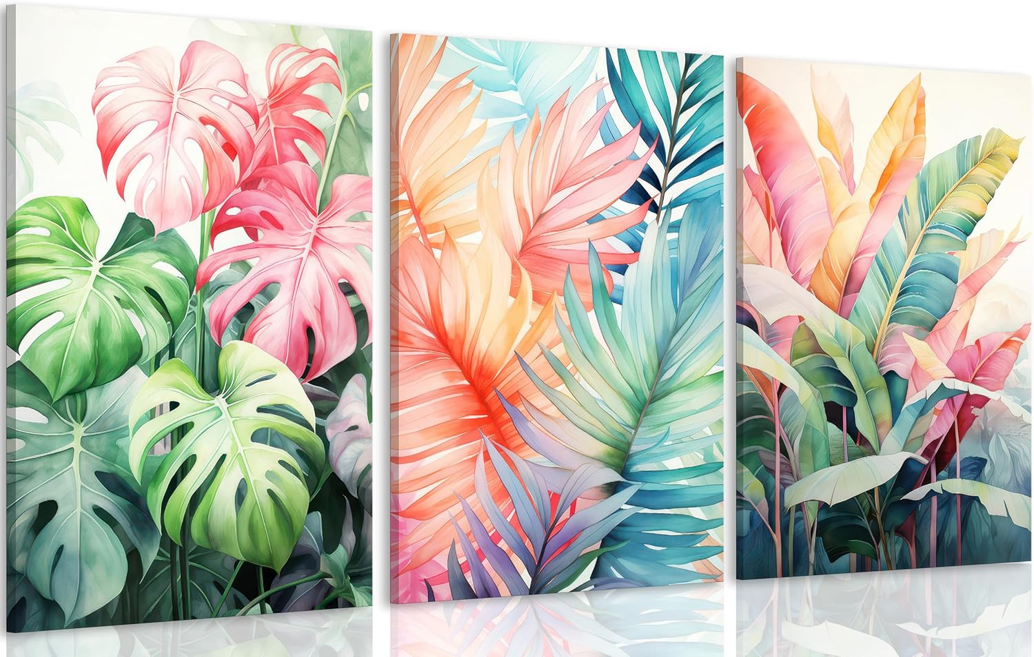 • Colorful Plant Wall Art Size:16x24in x3piece (40x60cm x3 )sturdy wooden frame,Each panel has a black hook already mounted on the wooden bar for easy hanging