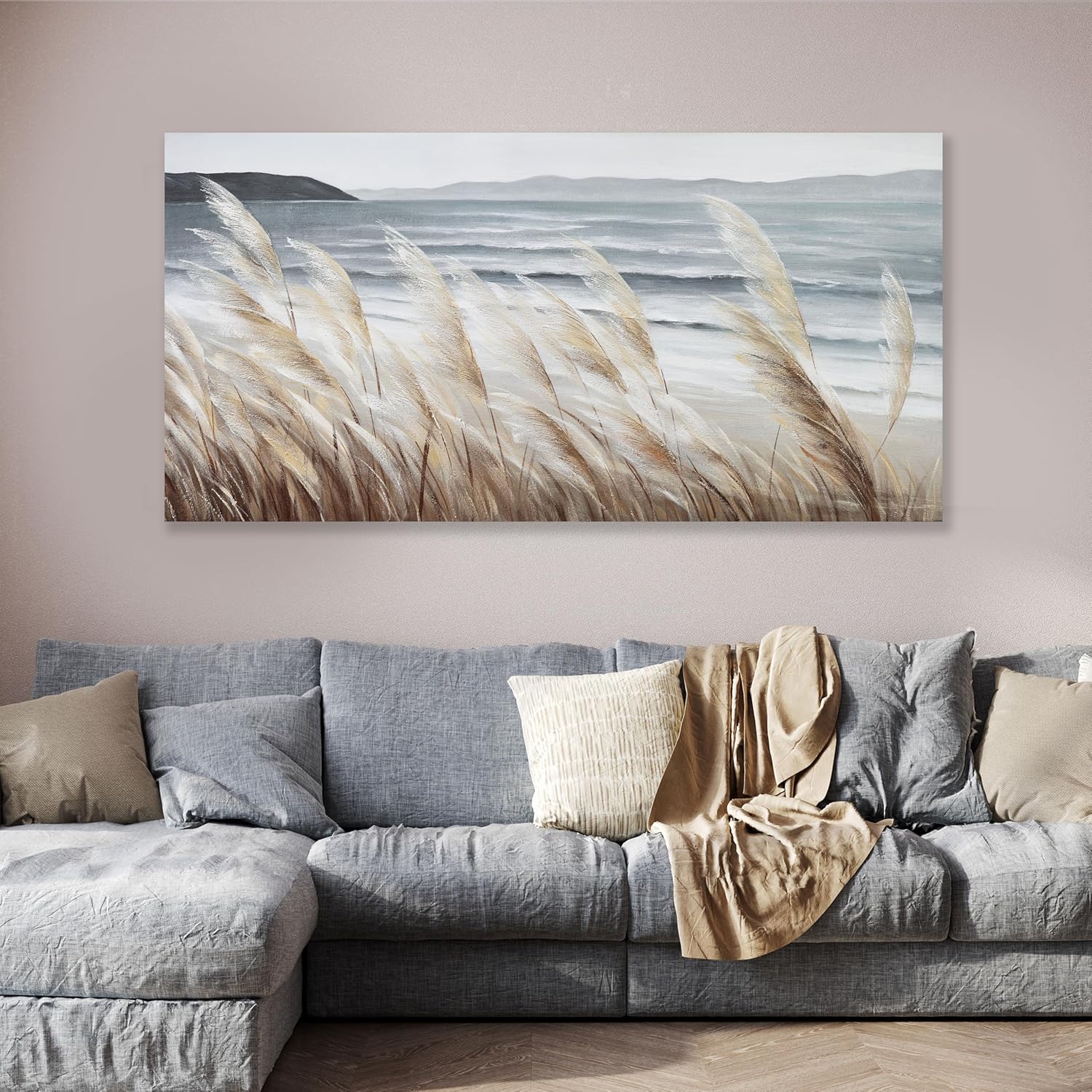 Plant Wall Art Nature Wall Art Reed Seascape Canvas Painting Wall Decor Framed Artwork for Bedroom Living Room Decoration Home Kitchen Office 24"x48"