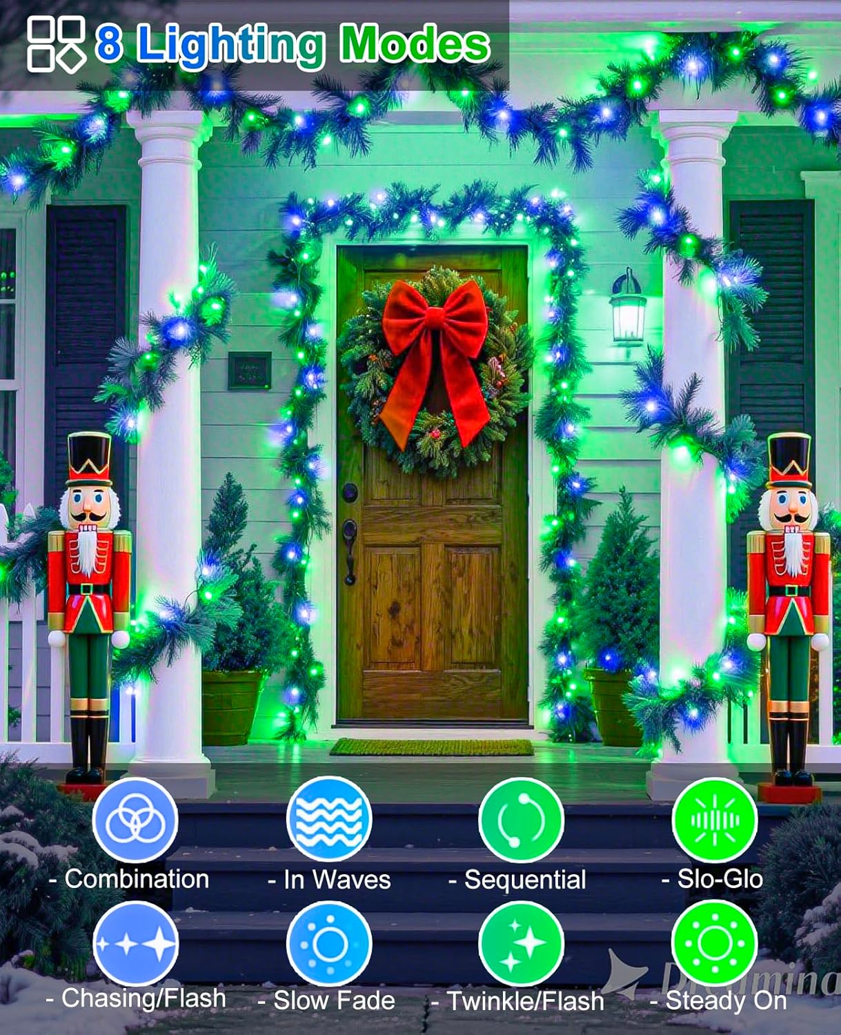 • 【8 Different Lighting Modes】These Christmas lights outdoor feature 8 lighting modes: combination, in waves, sequential, slo-glo, chasing/flash, slow fade, twinkle/flash, and steady on. Simply press the round button on the adapter to select your favorite mode. Perfect for creating a festive atmosphere and lighting up every corner with cozy, warm lights.