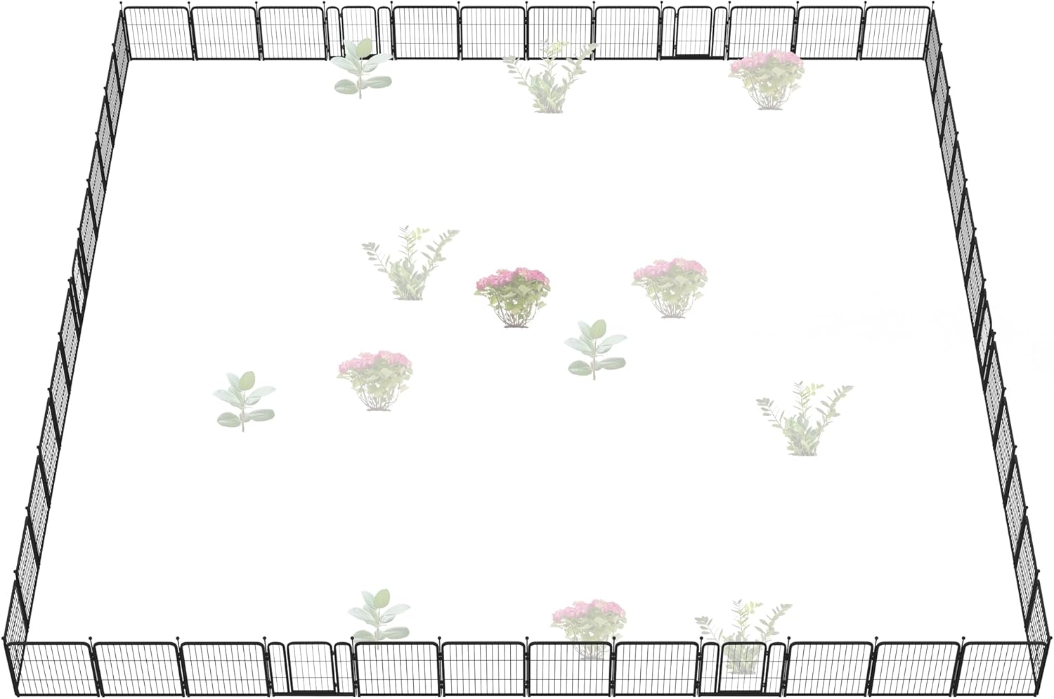 FXW Garden Fence Outdoor for The Yard – 24in(H) x 88.8ft(L) Heavy Duty Metal Animal Barrier for Dog and Rabbit, Decorative Dog Fence, 48 Panels, Black