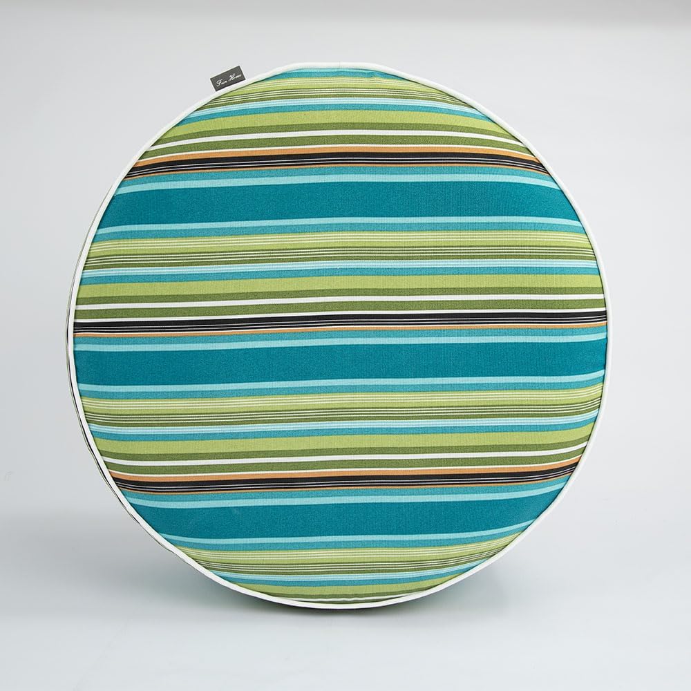 FUNHOME Inflatable Outdoor Ottoman with Air Pump,20"x9" Portable Patio Pouf,Water Resistant,Fade-Resistant,Round Blow Up Footrest Stools for Home Garden Camping Travel(Green Stripe)