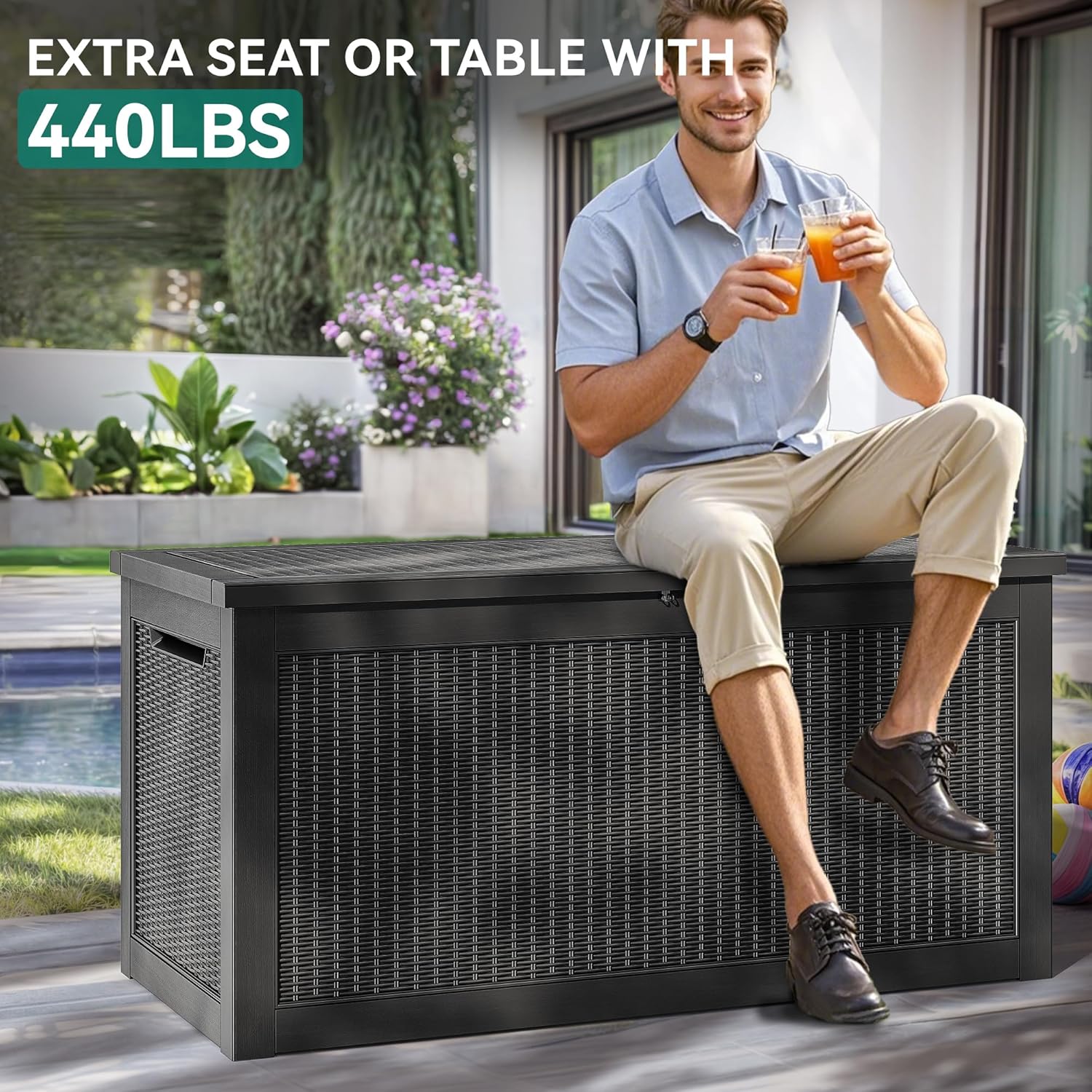 • Extra Seating or Table: The extra large outdoor storage deck box doubles as a comfortable bench seat with a weight capacity of 440pounds; Ideal for large patio gatherings or as a resting spot after yard work