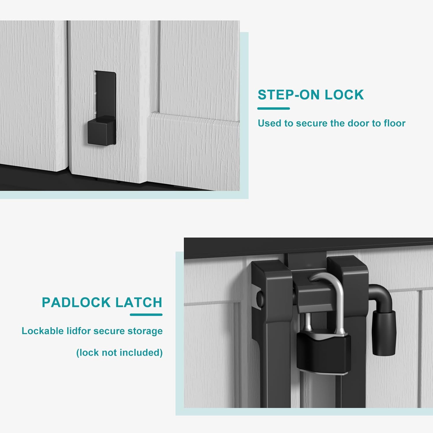 • Lockable:Our storage boxes feature a lockable design. Whether it's an expensive power tool, or personal outdoor gear, you can create a secure space in your outdoor area by simply locking the box. Giving you peace of mind that your belongings are protected from potential theft or unnecessary handling.