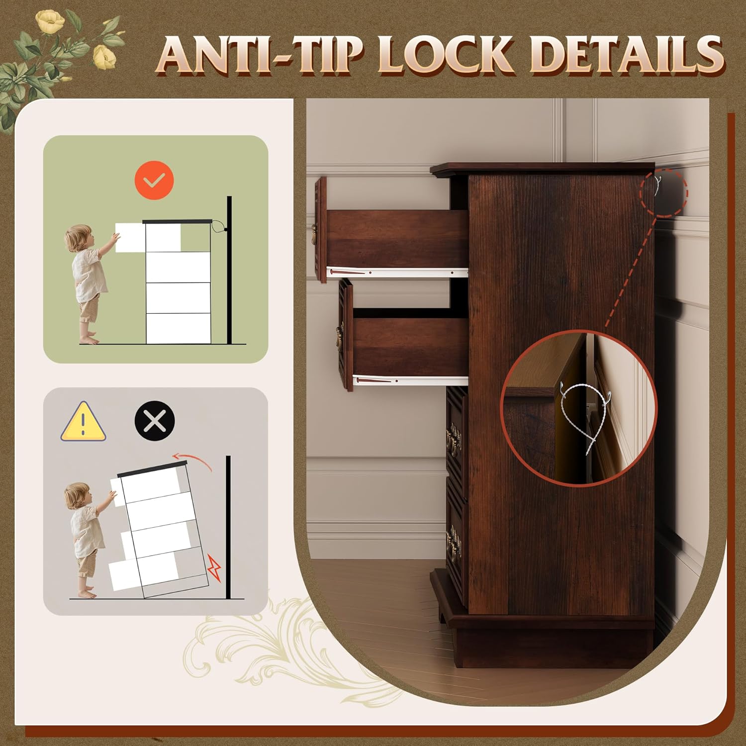• 🏡【Safe and Sturdy】The dressers & chests of drawers are made of durable engineered wood, featuring a thick tabletop that can support heavy items. Sloping edges and widened legs improve stability. An anti-tipping device ensures child safety by preventing wobbling and tipping.