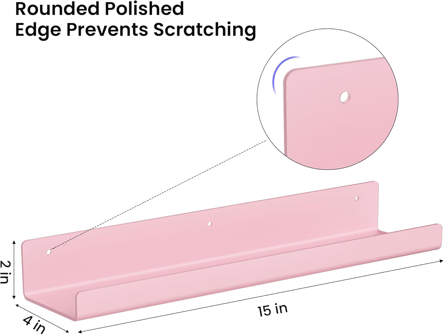 • 【UNIQUE WALL DECOR】Pink floating shelf with simple shiny appearance looks great and brings extremely beauty whether it is placed in rows or staggered, which fits any home decor. You can use them in many places: bathroom, bedroom, living room, wherever.