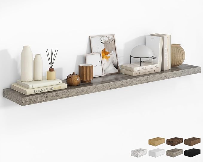 • 72 Inch Floating Shelves for Wall (Set of 1): Each wall shelves are 8 inches in depth and 1.5 inches in thickness. Our wall shelf can be used in combination, staggered high or low on the wall, or mounted side-by-side to provide extra storage space for organizing small items and clutter in multiple areas such as kitchens, bathrooms, and bedrooms, creating a clean and smooth look. Multiple colors available