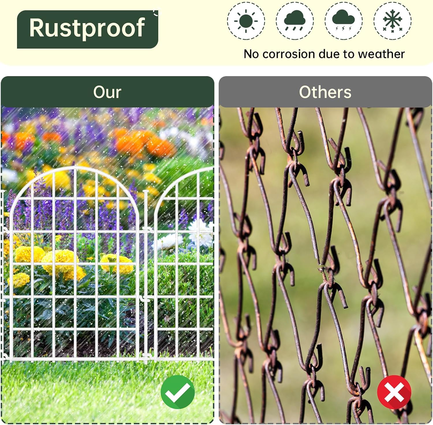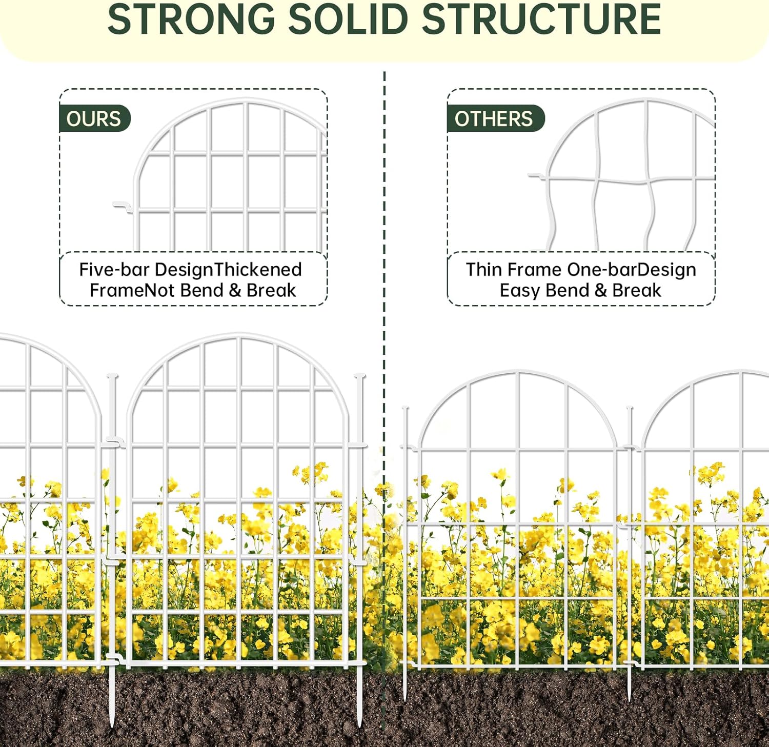 • 【5-LAYER HORIZONTAL BAR DESIGN】 Engineered with 5 reinforced horizontal bars, delivers exceptional strength, more solid, and not easy to bend, warp, and break. The gap is denser, and more effective at keeping animals out of your garden and damaging your plants. The classic arched appearance will add a touch of modern simplicity to your garden, patio and yard